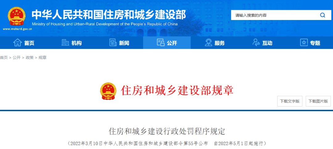 《住房和城乡建设行政处罚程序规定》2022年5月1日起施行!